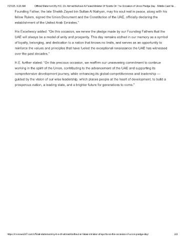 7/21/25, 9:20 AM Official Statement By H.E. Dr. Ahmad Belhoul Al Falasi Minister Of Sports On The Occasion of Union Pledge Day - Middle East Ne…