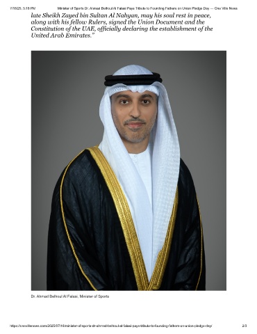 7/18/25, 5:18 PM Minister of Sports Dr. Ahmad Belhoul Al Falasi Pays Tribute to Founding Fathers on Union Pledge Day — One Ville News