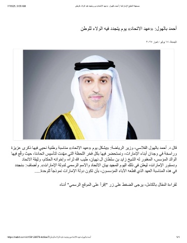 7/18/25, 9:09 AM نطوﻠﻟ ءﻻوﻟا ﮫﯾﻓ ددﺟﺗﯾ موﯾ «دﺎﺣﺗﻻا دﮭﻋ» :لوﮭﻟﺎﺑ دﻣﺣأ | ﺔﯾﺗارﺎﻣﻹا ﺞﯾﻠﺧﻟا ﺔﻔﯾﺣﺻ