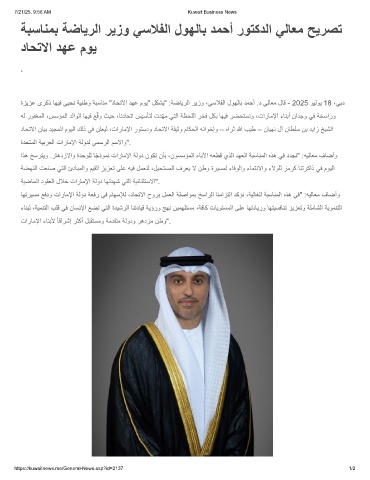 ةزﯾزﻋ ىرﻛذ ﺎﮭﯾﻓ ﻲﯾﺣﻧ ﺔﯾﻧطو ﺔﺑﺳﺎﻧﻣ "دﺎﺣﺗﻻا دﮭﻋ موﯾ" لﻛﺷﯾ" :ﺔﺿﺎﯾرﻟا رﯾزو ،ﻲﺳﻼﻔﻟا لوﮭﻟﺎﺑ دﻣﺣأ .د ﻲﻟﺎﻌﻣ لﺎﻗ - 2025 وﯾﻟوﯾ 18 ،ﻲﺑد