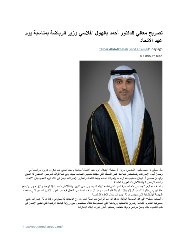 موي ةبسانمب ةضايرلا ريزو يسلافلا لوهلاب دمحأ روتكدلا يلاعم حيرصت