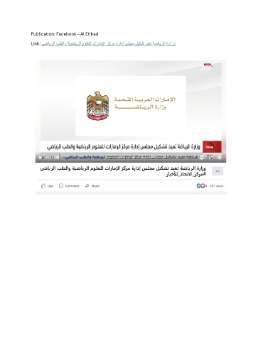 Publication: Facebook – Al Etihad Link: يضايرلا بطلاو ةيضايرلا مولعلل تاراملإا زكرم ةرادإ سلجم ليكشت ديعت ةضايرلا ةرازو