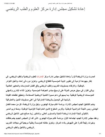 7/10/25, 9:14 AM ﻲﺿﺎﯾرﻟا بطﻟاو موﻠﻌﻟا زﻛرﻣ ةرادإ سﻠﺟﻣ لﯾﻛﺷﺗ ةدﺎﻋإ
