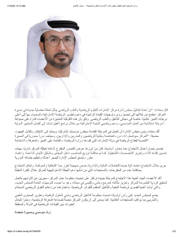ةﺮﯿﺴﻣ ﻲﻓ ةﺪﯾﺪﺟ ﺔﯿﻠﺼﻔﻣ ﺔﻈﺤﻟ ﻞﺜﻤﯾ ﻲﺿﺎﯾﺮﻟا ﺐﻄﻟاو ﺔﯿﺿﺎﯾﺮﻟا مﻮﻠﻌﻠﻟ تارﺎﻣﻹا ﺰﻛﺮﻣ ةرادإ ﺲﻠﺠﻣ ﻞﯿﻜﺸﺗ ةدﺎﻋإ نإ“ :ﮫﺗدﺎﻌﺳ لﺎﻗ