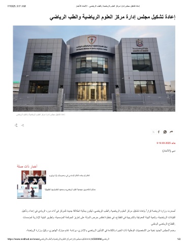 لﯾھﺄﺗو دادﻋإ ﻲﻓ يدﺎﯾرﻟا هرود ءادأ ﻲﻓ زﻛرﻣﻠﻟ ةدﯾدﺟ ﺔﻗﻼطﻧا ﺔﺑﺎﺛﻣﺑ نوﻛﯾﻟ ،ﻲﺿﺎﯾرﻟا بطﻟاو ﺔﯾﺿﺎﯾرﻟا موﻠﻌﻟا زﻛرﻣ لﯾﻛﺷﺗ ةدﺎﻋﺈﺑ ًارارﻗ ﺔﺿﺎﯾرﻟا ةرازو تردﺻأ