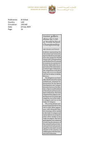 Publication: Al Etihad Country: UAE Circulation: 109,640 Date: 24 July 2025 Page: 16