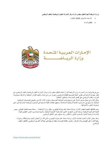 يف ،يضايرلا بطلاو ةيضايرلا مولعلل تاراملإا زكرم ةرادإ سلجم ليكشت ةداعإب ًارارق ةضايرلا ةرازو تردصأ / ماو /ويلوي 9 يف يبد