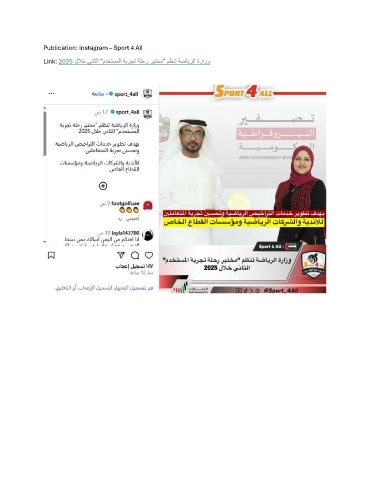 Publication: Instagram – Sport 4 All Link: 2025 للاخ يناثلا "مدختسملا ةبرجت ةلحر ربتخم" مظنت ةضايرلا ةرازو