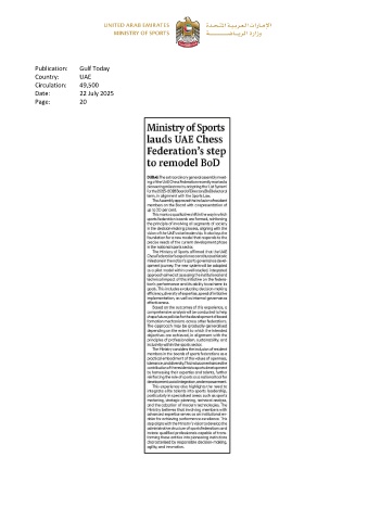 Publication: Gulf Today Country: UAE Circulation: 49,500 Date: 22 July 2025 Page: 20