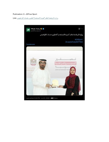 Publication: X – 20Four Sport Link: صيخارتلا تامدخ ريوطتل "مدختسملا ةبرجت" مظنت ةضايرلا ةرازو