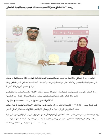 تﺎﻣﺪﺧ ﺮﯾﻮﻄﺘﻟ ﺎھدﻮﮭﺟ رﺎطإ ﻲﻓ ،مﺎﻌﻟا اﺬھ ﺔﯿﻧﺎﺜﻟا ةﺮﻤﻠﻟ "مﺪﺨﺘﺴﻤﻟا ﺔﺑﺮﺠﺗ ﺮﺒﺘﺨﻣ" تارﺎﻣﻹا ﺔﻟود ﻲﻓ ﺔﺿﺎﯾﺮﻟا ةرازو ﺖﻘﻠطأ
