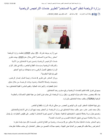 7/21/25, 10:06 AM تﻧﯾوﺑ ودرأ - ﺔﯾﺿﺎﯾرﻟا صﯾﺧارﺗﻟا تﺎﻣدﺧ رﯾوطﺗﻟ ”مدﺧﺗﺳﻣﻟا ﺔﺑرﺟﺗ“ مظﻧﺗ ﺔﺿﺎﯾرﻟا ةرازو