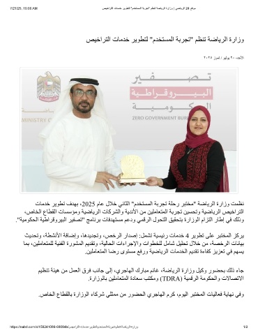 7/21/25, 10:06 AM صﯾﺧارﺗﻟا تﺎﻣدﺧ رﯾوطﺗﻟ "مدﺧﺗﺳﻣﻟا ﺔﺑرﺟﺗ" مظﻧﺗ ﺔﺿﺎﯾرﻟا ةرازو | ﻲﺿﺎﯾرﻟا 24 ﻊﻗوﻣ