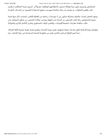 7/21/25, 10:06 AM ﺔﯾﺿﺎﯾرﻟا صﯾﺧارﺗﻟا تﺎﻣدﺧ رﯾوطﺗﻟ ”مدﺧﺗﺳﻣﻟا ﺔﺑرﺟﺗ“ مظﻧﺗ ﺔﺿﺎﯾرﻟا ةرازو - Nas News UAE