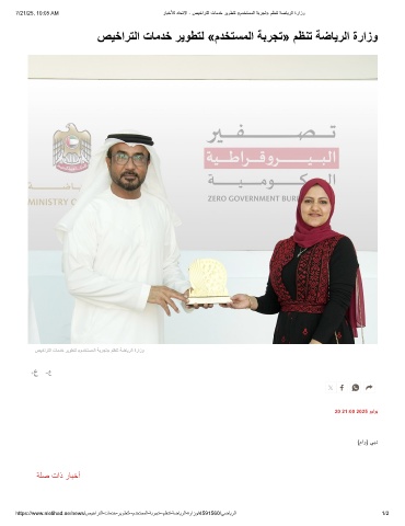 7/21/25, 10:05 AM رﺎﺑﺧﻸﻟ دﺎﺣﺗﻻا - صﯾﺧارﺗﻟا تﺎﻣدﺧ رﯾوطﺗﻟ «مدﺧﺗﺳﻣﻟا ﺔﺑرﺟﺗ» مظﻧﺗ ﺔﺿﺎﯾرﻟا ةرازو