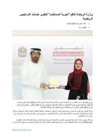 صيخارتلا تامدخ ريوطتل ”مدختسملا ةبرجت“ مظنت ةضايرلا ةرازو