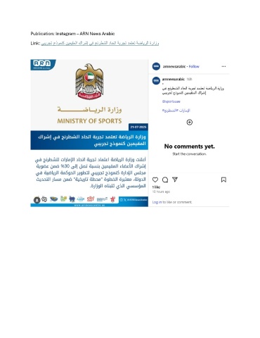 Publication: Instagram – ARN News Arabic Link: ﻲﺑﯾرﺟﺗ جذوﻣﻧﻛ نﯾﻣﯾﻘﻣﻟا كارﺷإ ﻲﻓ ﺞﻧرطﺷﻟا دﺎﺣﺗا ﺔﺑرﺟﺗ دﻣﺗﻌﺗ ﺔﺿﺎﯾرﻟا ةرازو