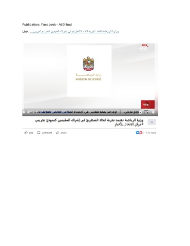 Publication: Facebook – Al Etihad Link: ...ﻲﺑﯾرﺟﺗ جذوﻣﻧﻛ نﯾﻣﯾﻘﻣﻟا كارﺷإ ﻲﻓ ﺞﻧرطﺷﻟا دﺎﺣﺗا ﺔﺑرﺟﺗ دﻣﺗﻌﺗ ﺔﺿﺎﯾرﻟا ةرازو