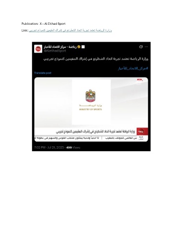 Publication: X – Al Etihad Sport Link: ﻲﺑﯾرﺟﺗ جذوﻣﻧﻛ نﯾﻣﯾﻘﻣﻟا كارﺷإ ﻲﻓ ﺞﻧرطﺷﻟا دﺎﺣﺗا ﺔﺑرﺟﺗ دﻣﺗﻌﺗ ﺔﺿﺎﯾرﻟا ةرازو