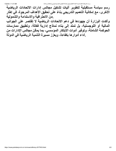 ﺐﻧاﻮﺠﻟا ﻰﻠﻋ ﺮﺼﺘﻘﺗ ﻻ ﺔﯿﺿﺎﯾﺮﻟا تادﺎﺤﺗﻻا ﻢﻋد ﻲﻓ ﺎھدﻮﮭﺟ نأ ةرازﻮﻟا تﺪﻛأو