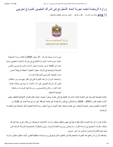 ﺔﺿﺎﯾرﻟا ةرازو تﻧﻠﻋأ (ء2025 وﯾﻟوﯾ 21 ۔ كروﺗﻧ تﻧﯾوﺑ ودرأ ) ﻲﺑد