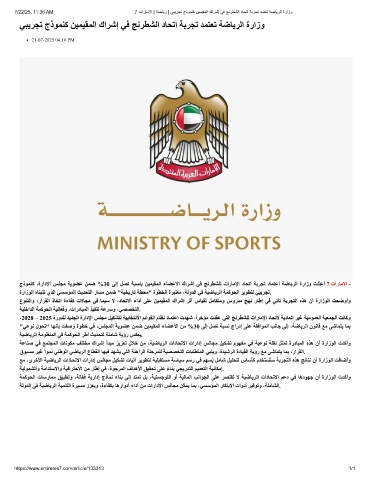 7/22/25, 11:36 AM 7 تارﺎﻣﻻا | ﺔﺿﺎﯾر | ﻲﺑﯾرﺟﺗ جذوﻣﻧﻛ نﯾﻣﯾﻘﻣﻟا كارﺷإ ﻲﻓ ﺞﻧرطﺷﻟا دﺎﺣﺗا ﺔﺑرﺟﺗ دﻣﺗﻌﺗ ﺔﺿﺎﯾرﻟا ةرازو
