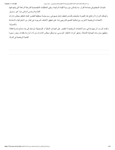 ،ﺔﻟﺎّﻌﻓ ﺔﯾرادإ جذﺎﻤﻧ ءﺎﻨﺑ ﻰﻟإ ﺪﺘﻤﺗ ﻞﺑ ،ﺔﯿﺘﺴﺟﻮﻠﻟا وأ ﺔﯿﻟﺎﻤﻟا ﺐﻧاﻮﺠﻟا ﻰﻠﻋ ﺮﺼﺘﻘﺗ ﻻ ﺔﯿﺿﺎﯾﺮﻟا تادﺎﺤﺗﻻا ﻢﻋد ﻲﻓ ﺎھدﻮﮭﺟ نأ ةرازﻮﻟا تﺪﻛأو