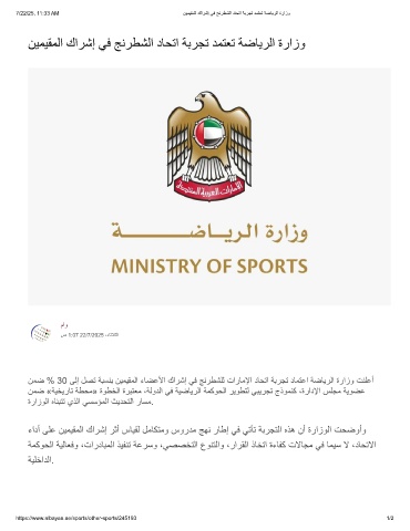 نﻣﺿ % 30 ﻰﻟإ لﺻﺗ ﺔﺑﺳﻧﺑ نﯾﻣﯾﻘﻣﻟا ءﺎﺿﻋﻷا كارﺷإ ﻲﻓ ﺞﻧرطﺷﻠﻟ تارﺎﻣﻹا دﺎﺣﺗا ﺔﺑرﺟﺗ دﺎﻣﺗﻋا ﺔﺿﺎﯾرﻟا ةرازو تﻧﻠﻋأ
