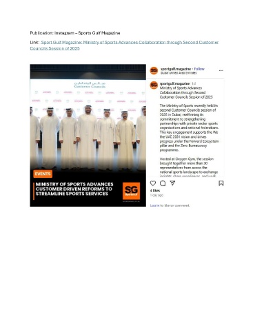 Publication: Instagram – Sports Gulf Magazine Link: Sport Gulf Magazine: Ministry of Sports Advances Collaboration through Second Customer Councils Session of 2025