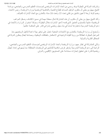 ﺔﺳﺎﺋﺮﺑ ،ﻲﻌﻣﺎﺠﻟاو ﻲﺳرﺪﻤﻟا ﻢﯿﻠﻌﺘﻟا تﺎﺴﺳﺆﻤﻟ ﻲﺿﺎﯾﺮﻟا تارﺎﻣﻹا دﺎﺤﺗا ﻦﻣ ﻲﻤﺳر ﺪﻓﻮﺑ ﺔﻟﻮﻄﺒﻟا ﻲﻓ ﺔﻟوﺪﻟا ﺖﻛرﺎﺷو