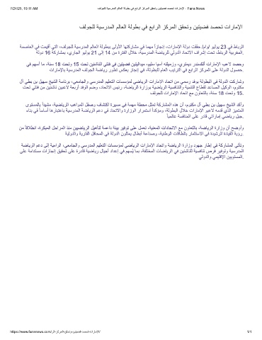 تارﺎﻣﻹﺎﺑ ﺔﯾﺳردﻣﻟا فﻟوﺟﻟا ﺔﺿﺎﯾر روطﺗ سﻛﻌﯾ زﺎﺟﻧإ ﻲﻓ ،ﺔﻟوطﺑﻠﻟ مﺎﻌﻟا بﯾﺗرﺗﻟا ﻲﻓ ﻊﺑارﻟا زﻛرﻣﻟا ﻰﻠﻋ ﺔﻟودﻟا لوﺻﺣ.