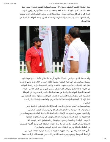 تارﺎﻣإلا ﻮﺒﻋال ﻪﻣﺪﻗ يﺬﻟا فرشﻤﻟا ءادألﺎﺑ ًاﺪﻴﺸﻣ ،ﺔﻴﻨﻃﻮﻟا ﺔﻴﺿﺎﻳﺮﻟا ﺐﻫاﻮﻤﻟا ﻢﻋد ةﺮﻴﺴﻣ