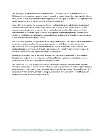 The Ministry of Sports emphasised that the second Customer Councils of 2025 reflected the