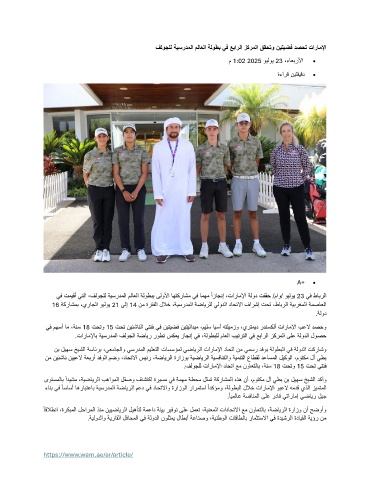 يف تميقأ يتلا ،فلوجلل ةيسردملا ملاعلا ةلوطبب ىلولأا اهتكراشم يف امهم ًازاجنإ ،تاراملإا ةلود تققح /ماو/ ويلوي 23 يف طابرلا