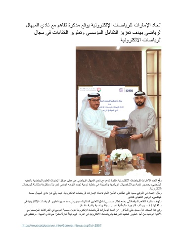 ىلإ ع لطتنو ،لاهيملا يدان عم ا ً رمثم اًنواعت أدبن مويلا .ةلودلا يف ةينورتكللاا تاضايرلاب طبترملا دهشملا ريوطت لجأ نم ةينطولا ةيدنلأا