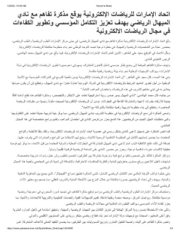 ،ﻲﺿﺎﯾرﻟا بطﻟاو ﺔﯾﺿﺎﯾرﻟا موﻠﻌﻠﻟ تارﺎﻣﻹا زﻛرﻣ ﻰﻧﺑﻣ ﻲﻓ ،ﻲﺿﺎﯾرﻟا لﺎﮭﯾﻣﻟا يدﺎﻧ ﻊﻣ مھﺎﻔﺗ ةرﻛذﻣ ﺔﯾﻧورﺗﻛﻟﻹا تﺎﺿﺎﯾرﻠﻟ تارﺎﻣﻹا دﺎﺣﺗا ﻊ ّ ﻗو