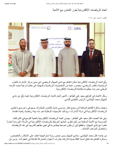 7/29/25, 9:56 AM ﺔﯾدﻧﻷا ﻊﻣ نوﺎﻌﺗﻟا ززﻌُﯾ ﺔﯾﻧورﺗﻛﻟﻹا تﺎﺿﺎﯾرﻟا دﺎﺣﺗا | ﺔﯾﺗارﺎﻣﻹا دﺎﺣﺗﻻا ﺔﻔﯾﺣﺻ