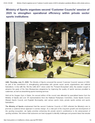 UAE, Thursday, July 31, 2025- The Ministry of Sports convened the second ‘Customer Councils' session of 2025,