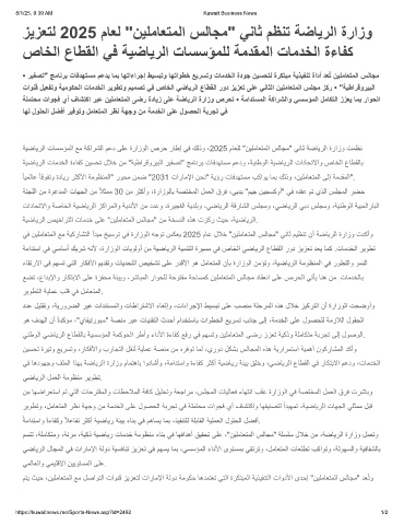 ﺔﻠﻣﺗﺣﻣ تاوﺟﻓ يأ فﺎﺷﺗﻛا رﺑﻋ نﯾﻠﻣﺎﻌﺗﻣﻟا ﻰﺿر ةدﺎﯾز ﻰﻠﻋ ﺔﺿﺎﯾرﻟا ةرازو صرﺣﺗ • ﺔﻣادﺗﺳﻣﻟا ﺔﻛارﺷﻟاو ﻲﺳﺳؤﻣﻟا لﻣﺎﻛﺗﻟا ززﻌﯾ ﺎﻣﺑ راوﺣﻟا
