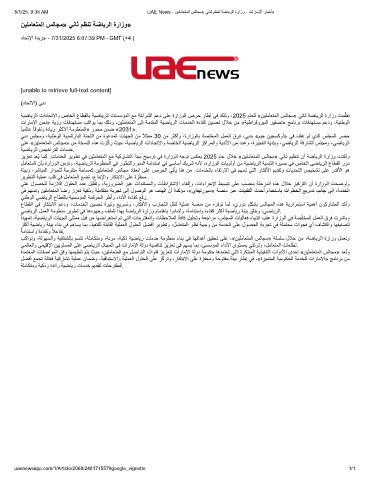 8/1/25, 9:36 AM UAE News - نﯾﻠﻣﺎﻌﺗﻣﻟا سﻟﺎﺟﻣ» ﻲﻧﺎﺛ مظﻧﺗ ﺔﺿﺎﯾرﻟا ةرازو - تارﺎﻣﻹا رﺎﺑﺧأ»