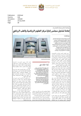 Publication: Al Etihad Country: UAE Circulation: 109,640 Date: 10 July 2025 Page: 28