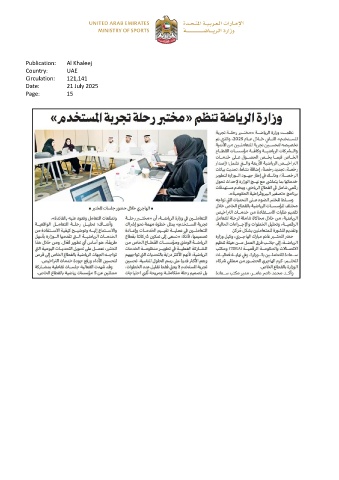 Publication: Al Khaleej Country: UAE Circulation: 121,141 Date: 21 July 2025 Page: 15
