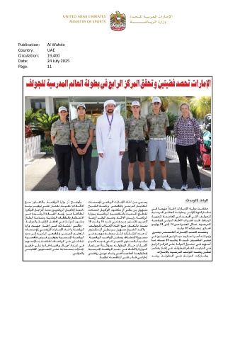 Publication: Al Wahda Country: UAE Circulation: 19,400 Date: 24 July 2025 Page: 11
