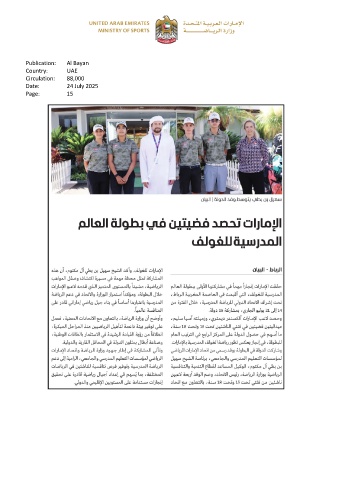 Publication: Al Bayan Country: UAE Circulation: 88,000 Date: 24 July 2025 Page: 15