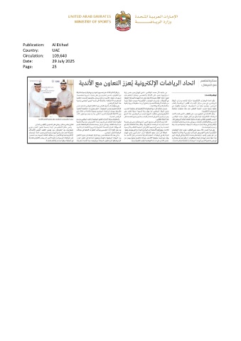 Publication: Al Etihad Country: UAE Circulation: 109,640 Date: 29 July 2025 Page: 25