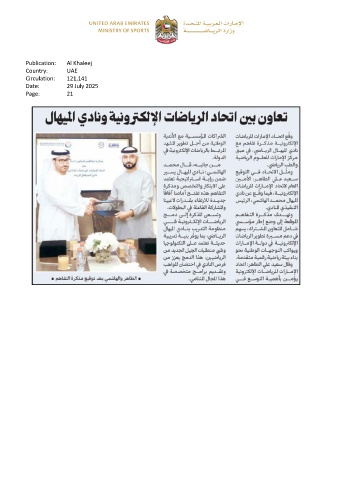 Publication: Al Khaleej Country: UAE Circulation: 121,141 Date: 29 July 2025 Page: 21