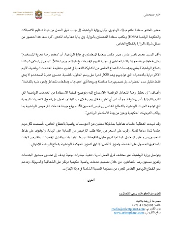 . تاراملإا ةلود يف ةلماشلا ةيمنتلا ةموظنم نم ءزجك صاخلا ي ضايرلا عاطقلا ومن