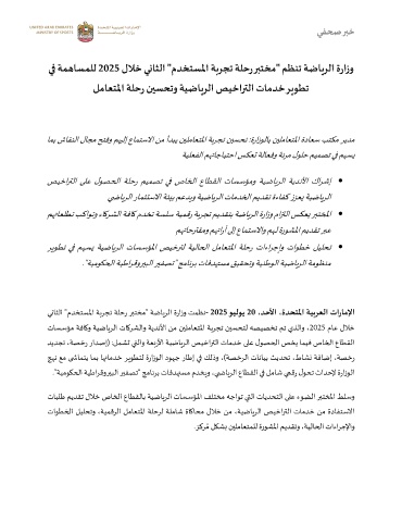 يناثلا "مدختسلما ةبرجت ةلحر ربتخم" ةضايرلا ةرازو تمظن - 2025 ويلوي ، 20 دح لا ،ةدحتلما ةيبرعلا تاراملإا