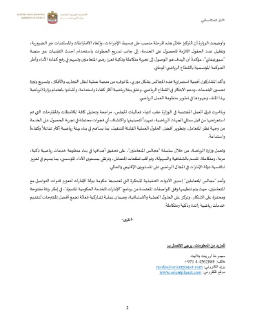 ةضايرلا ةرازو مامتهاب اوداشأو ، ةمادتساو ةءافك رثكأ ةيضاير ةئيب قلخو ،ي ضايرلا عاطق لا يف راكتبلاا معد و ،تامدخلا نيسحت