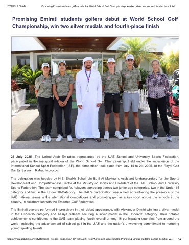 7/24/25, 9:50 AM Promising Emirati students golfers debut at World School Golf Championship, win two silver medals and fourth-place finish